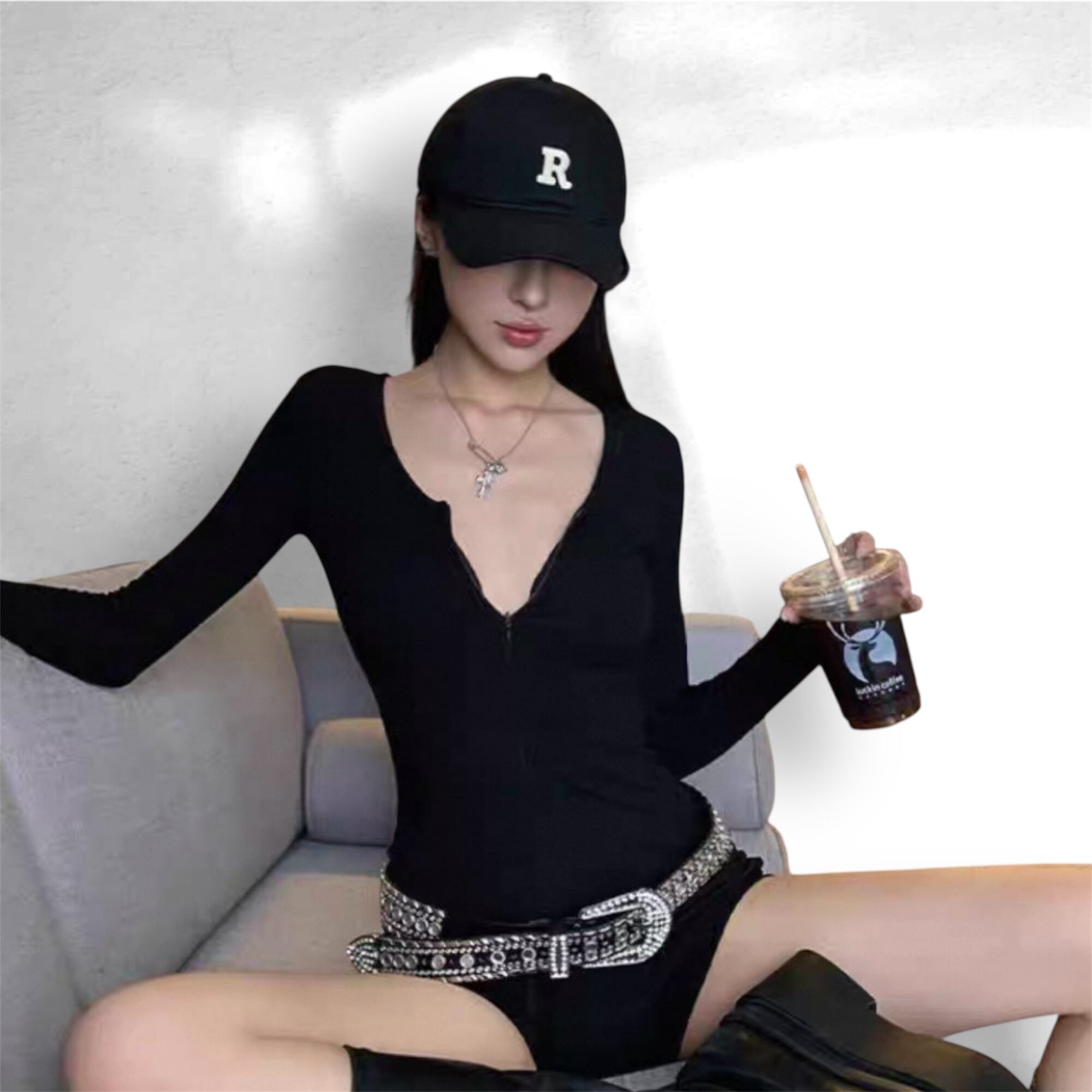 【セクシーウェア】フロントチャックボディスーツ ブラックy1