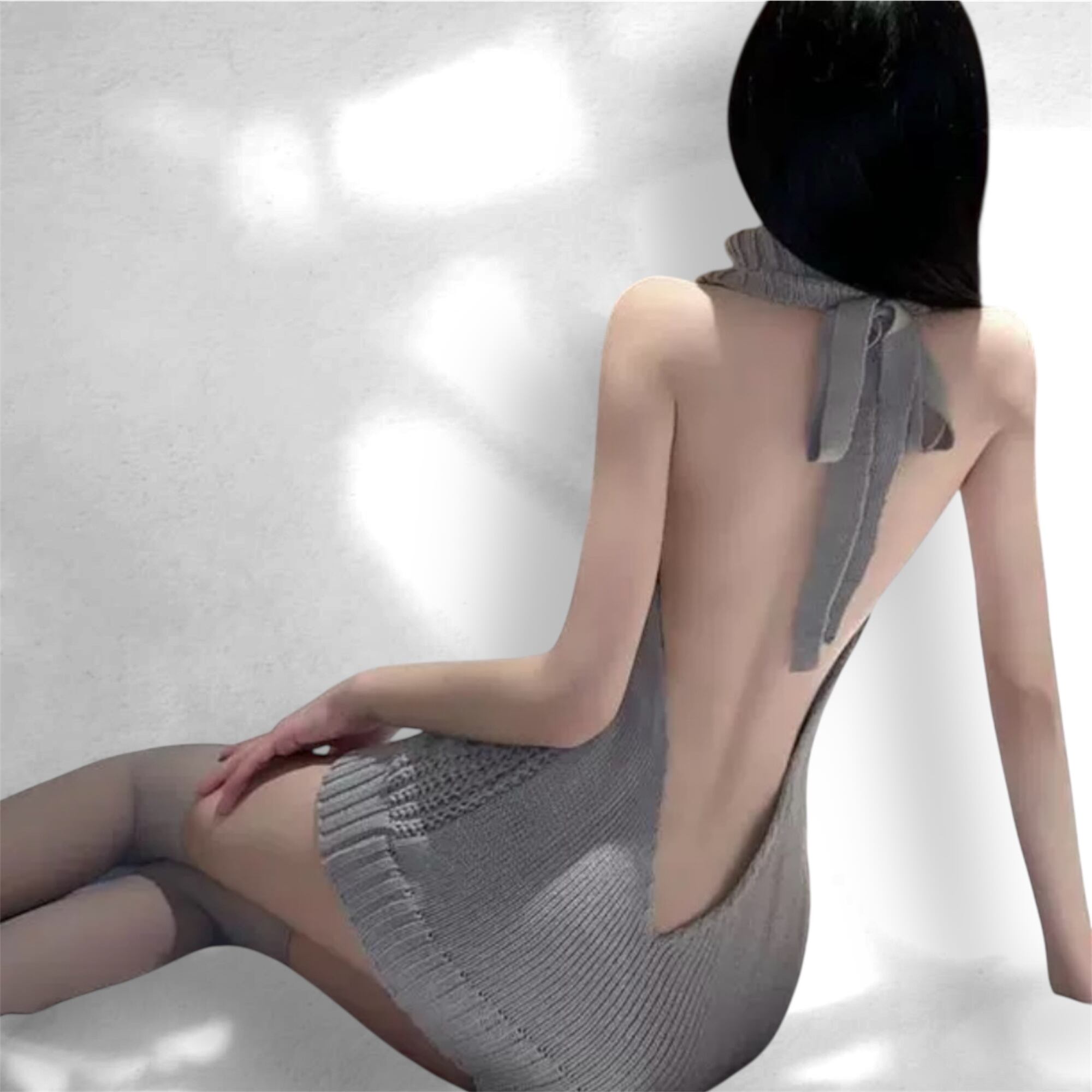 背中から胸元まで一気に開いた、大胆すぎるニットドレス。